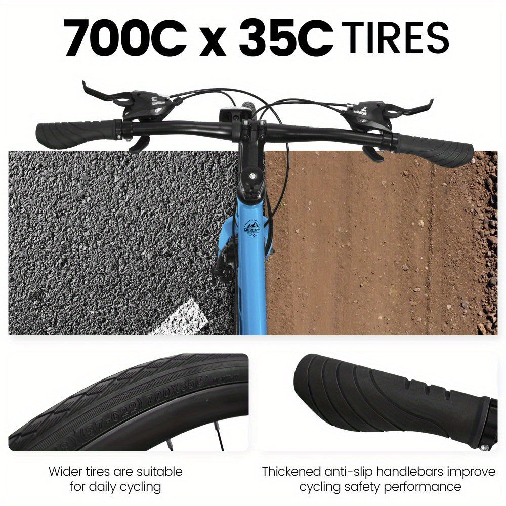 A28250 700C Road Hybrid Bike for Adult, 21-Speed Road Bike Road Bicycle Carbon Steel Frame\ Dual-Disc Brakes\ Multiple Colors