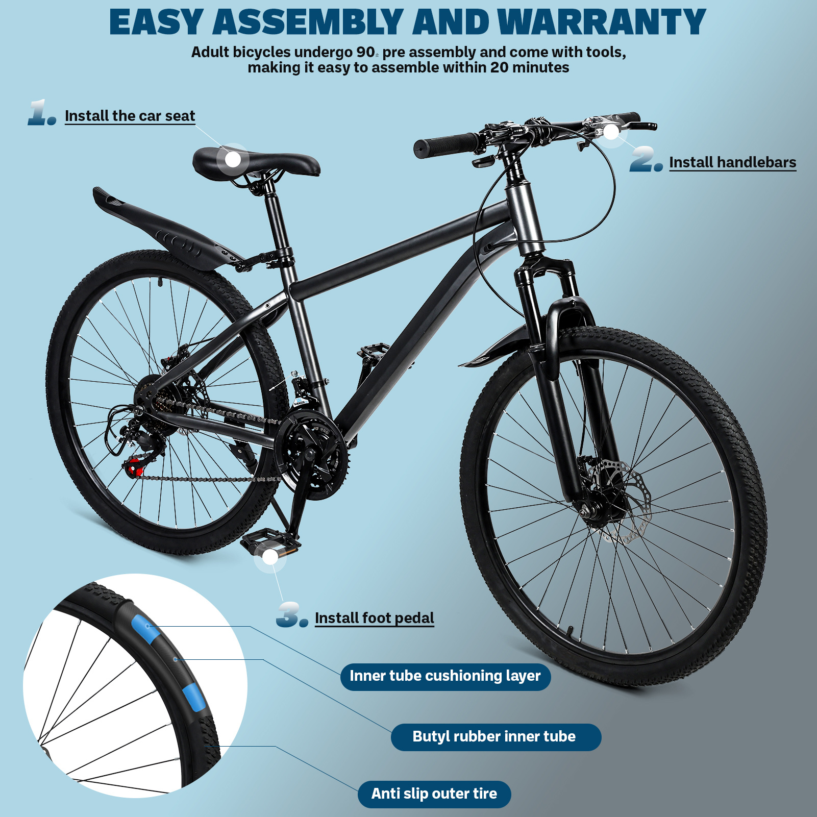 Men'S And Women'S Mountain Bike, 26 Inch Mountain Bike, 21 Speed, High Carbon Steel Frame, Front And Rear Disc Brakes