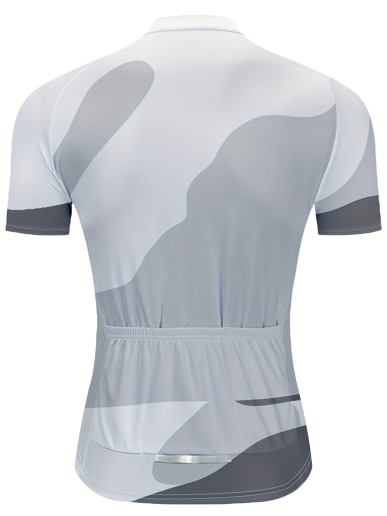 White MOXILYN Men's Quick-Dry Polyester Athletic Cycling Jersey - Short Sleeve, Zip-Up, Breathable with Gray & Black Abstract Design, Perfect for Running, Training & Outdoor Activities